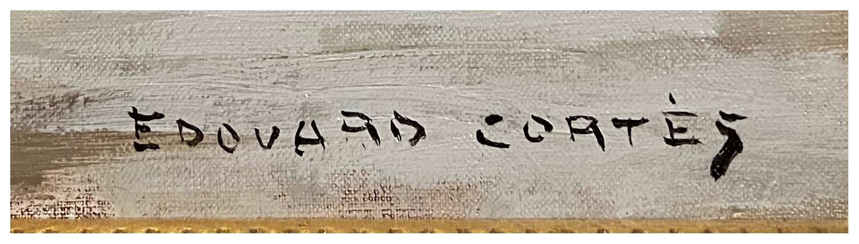 Notes: Place du Theatre de la Francais en la Neige, Paris by Edouard Leon Cortes was painted circa 1955-60. The painting, which is signed lower right Edouard Cortes, is oil on canvas measuring 13 x 18 inches. There is a country store, Austin, Texas label verso.